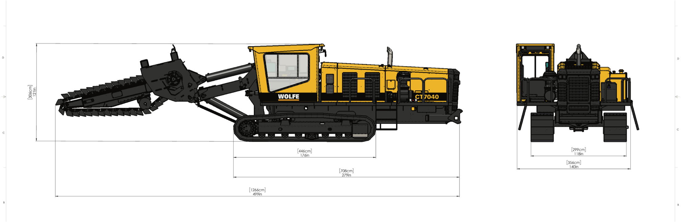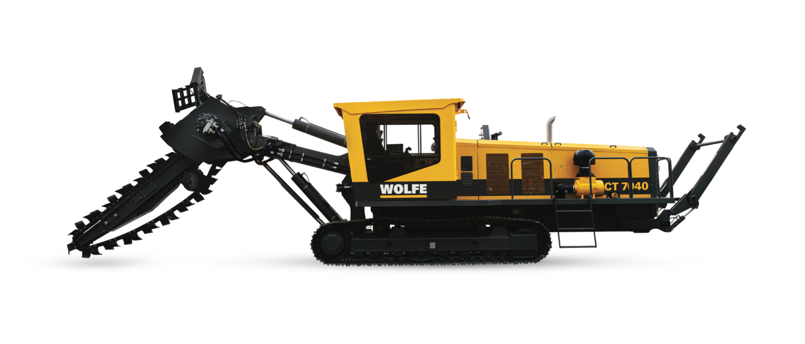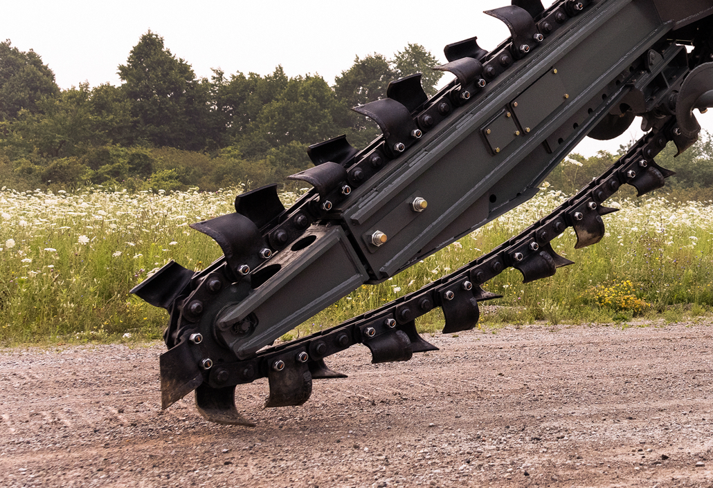 - The Wolfe Chain Trencher features a chain with a maximum cut width of 24” [61cm] & depth of 7ft [213 cm].
