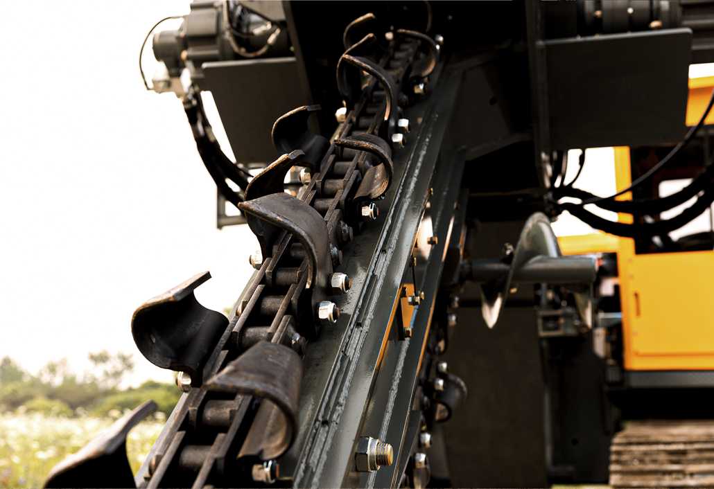 The Wolfe Chain Trencher features a chain with a maximum cut width of 24” [61cm] & depth of 7ft [213 cm].
