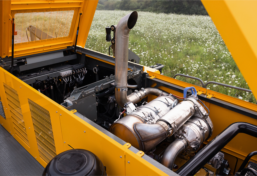 The hoods are designed with extra clearance when open for easy maintenance access to the engine and hydraulics.
