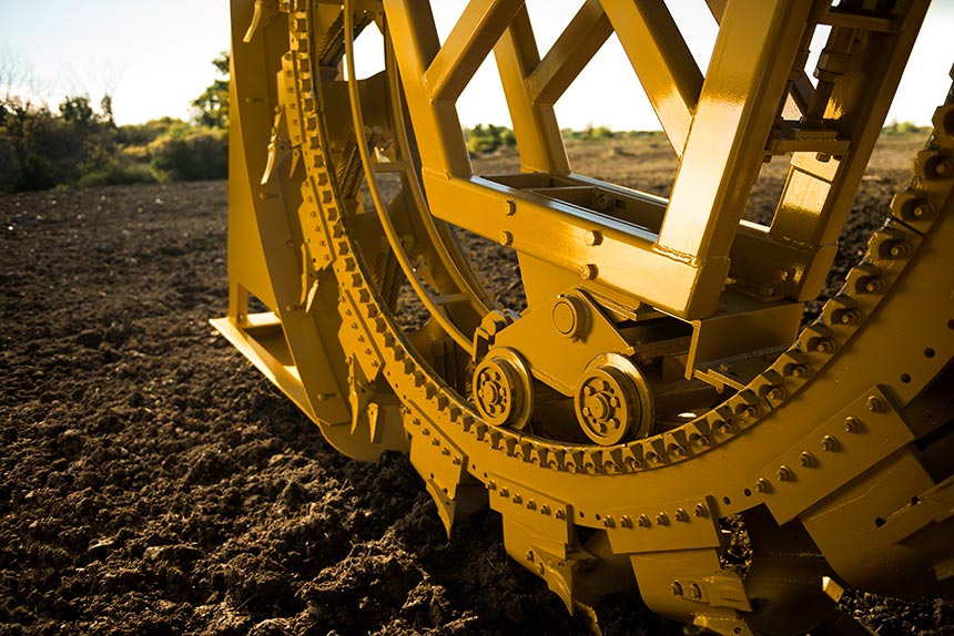 The Wolfe 7000 features a wheel with a maximum trench depth of 7ft. [210cm] and up to 36" [91cm] trench width.